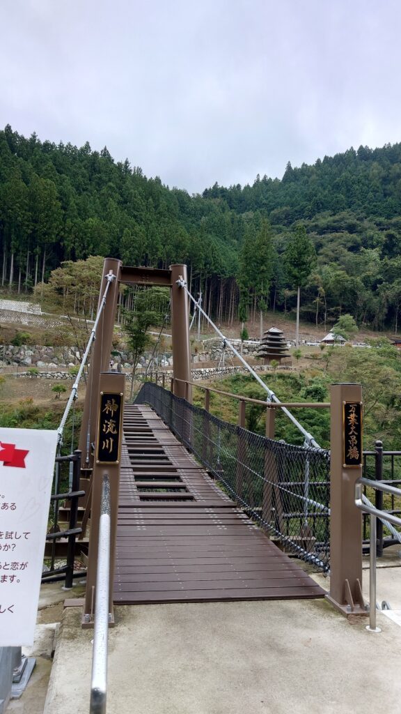 川にかかる万葉大吊橋があります。
