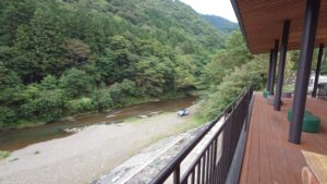 そばを流れる神流川を見下ろせるテラスと