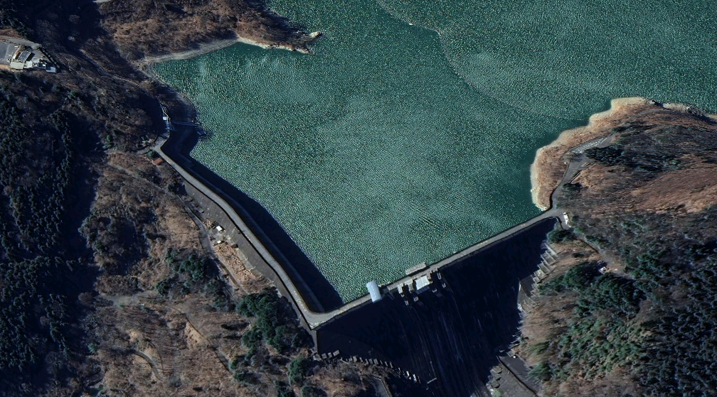 下久保ダムの特徴である L 字型の堤体を