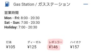 コストコで給油したところレギュラーガソリンは