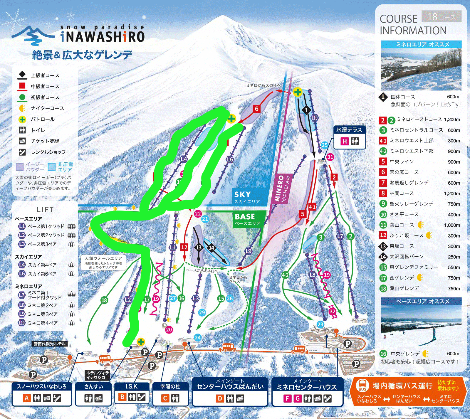 - ベースエリア:西ゲレンデ、葉山コース