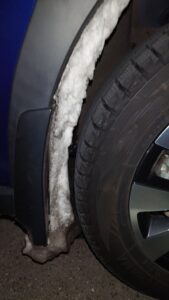 タイヤハウスに雪びっしり