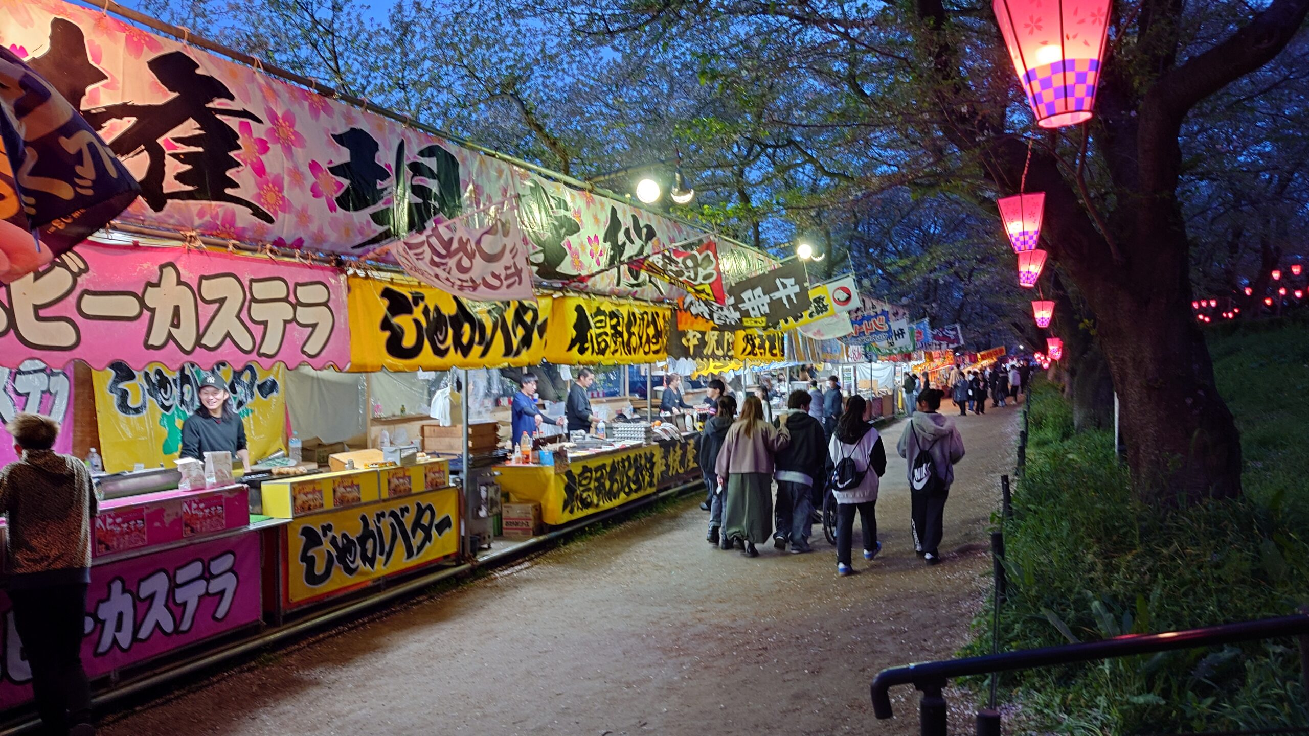 - 露店・キッチンカー: 約100店舗が出店。9:00〜16:00頃(夜桜期間は延長あり)を中心に営業しています。