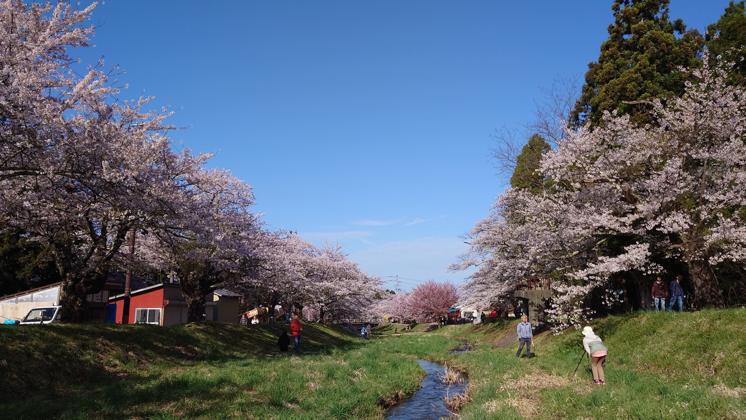 桜はすでに満開。祭り後半には